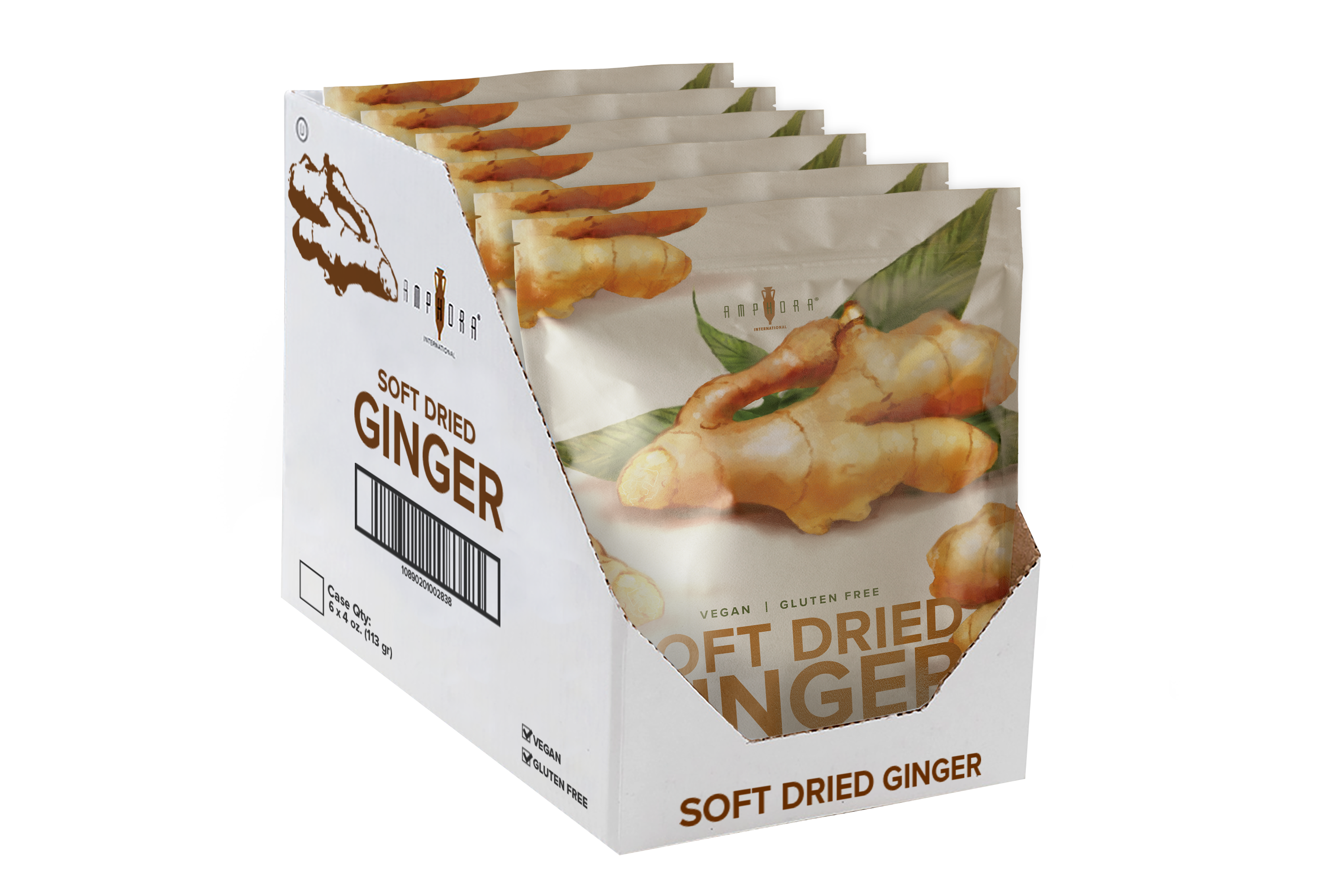 Here at Amphora we have dried, cubed, and tossed the ginger in sugar to create a delicious treat. Amphora’s Soft Dried Ginger provides a bite size kick of flavor to wake up your taste buds and leave your mouth feeling invigorated! Try our ginger pieces alone, dropped into a cup of tea, or paired alongside curries. Eat well, live well!
