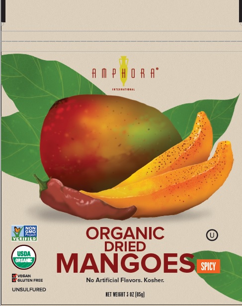 Amphora organic spicy mangoes are good for snacking With our Dried Spicy Mango you’ll enjoy a naturally sweet snack with just the right kick of spice. A healthy snack that can be enjoyed with your friends and family Our delicious Dried Spicy Mango Strips are Gluten-Free, and No Artificial Flavors Added. 6 pouches per case - Individually packaged in a 3 oz. aluminum resealable pouches Looking to spice things up? Meet our Dried Spicy Mango a savory and sweet snack that everyone will enjoy on-the-go. No Artificial Flavors, 100% Organic Mexican Mango